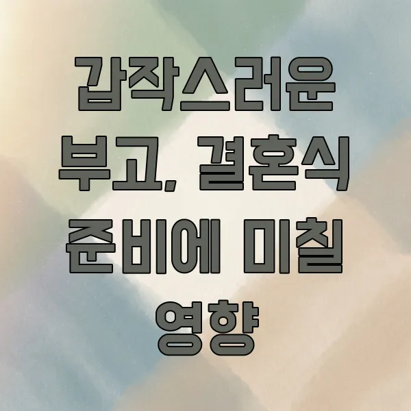 결혼을 준비하다 보면 정말 신경 써야 할 일이 한두 가지가 아니잖아요. 웨딩홀 예약부터 신혼여행, 예물, 혼수까지… 이 모든 것을 미리 계획하고 진행해야 하는데, 예상치 못한 부고 소식은 준비 과정에 예상치 못한 차질을 가져올 수밖에 없거든요.