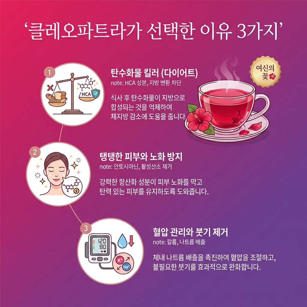 히비스커스는 단순히 예쁜 꽃차가 아닙니다. 그 속에는 중년의 건강 고민을 덜어줄 수 있는 핵심 성분들이 꽉 차 있거든요. 📌