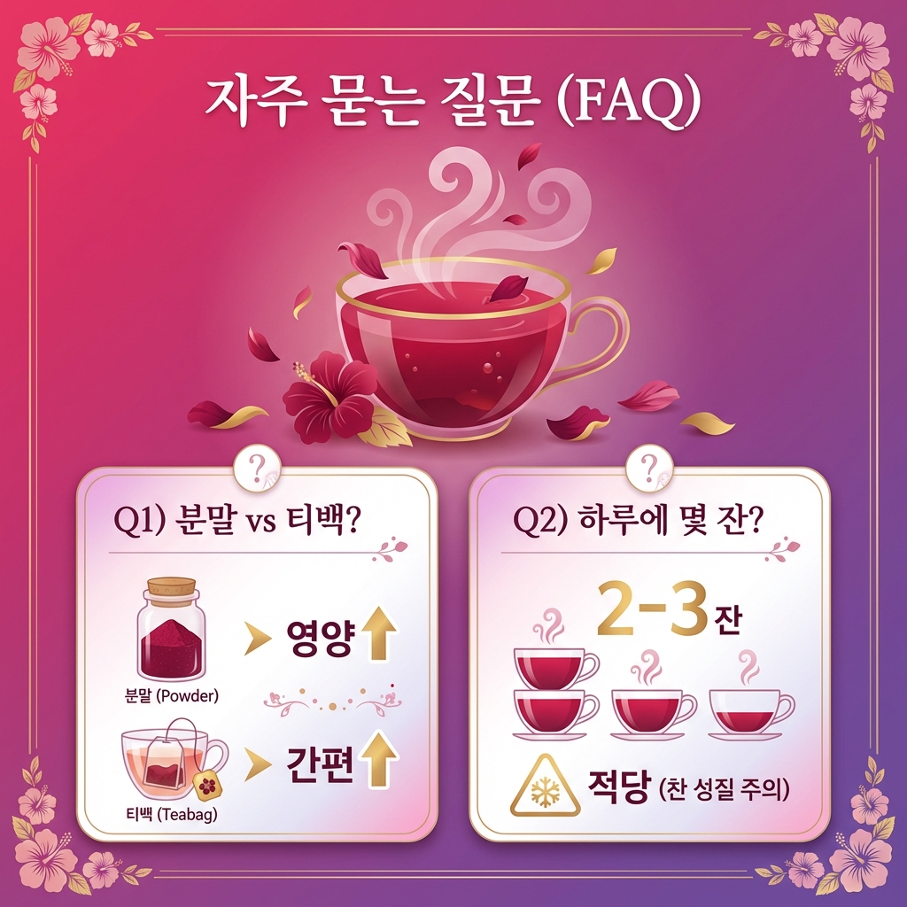 아무리 좋은 차라도 내 몸에 안 맞으면 독이 될 수 있죠. 특히 히비스커스는 성질이 뚜렷해서 주의가 필요해요. ⚠️