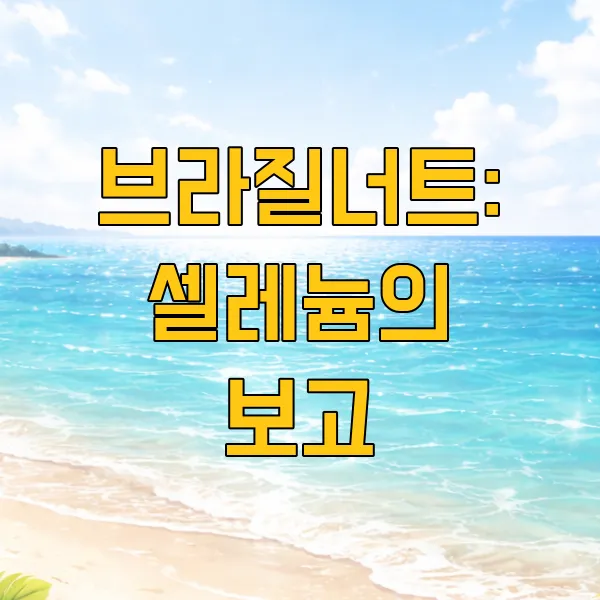 브라질너트는 셀레늄 함량 이 매우 높은 것으로 유명합니다. 셀레늄은 우리 몸의 면역 체계를 강화하고, 갑상선 기능을 조절하며, 강력한 항산화 작용을 하는 미네랄입니다.