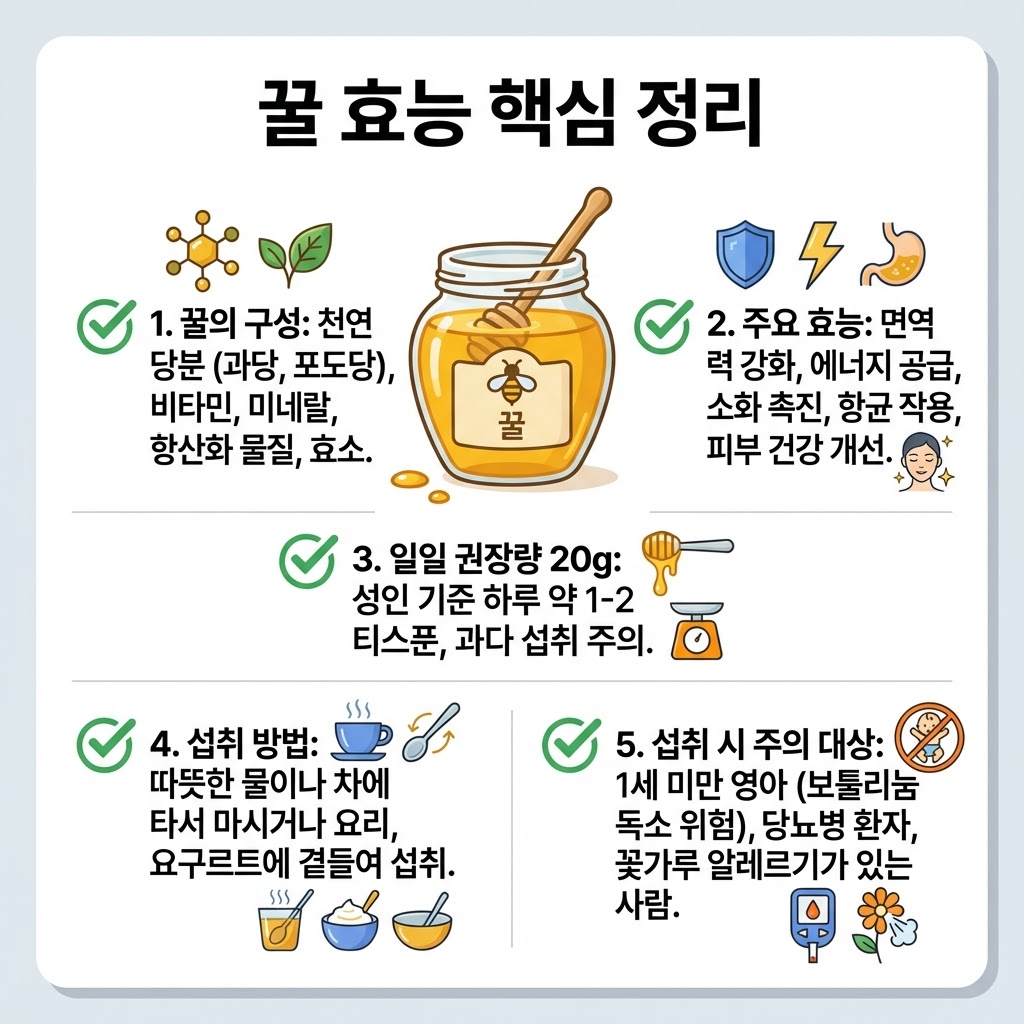 꿀의 효능을 제대로 누리려면 올바른 방법으로 섭취해야 해요. 📋 아래 가이드를 참고해서 안전하게 섭취해 보세요.